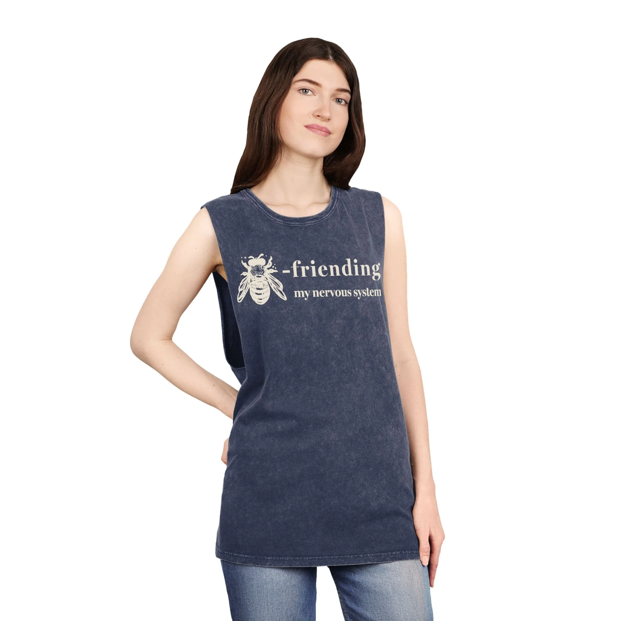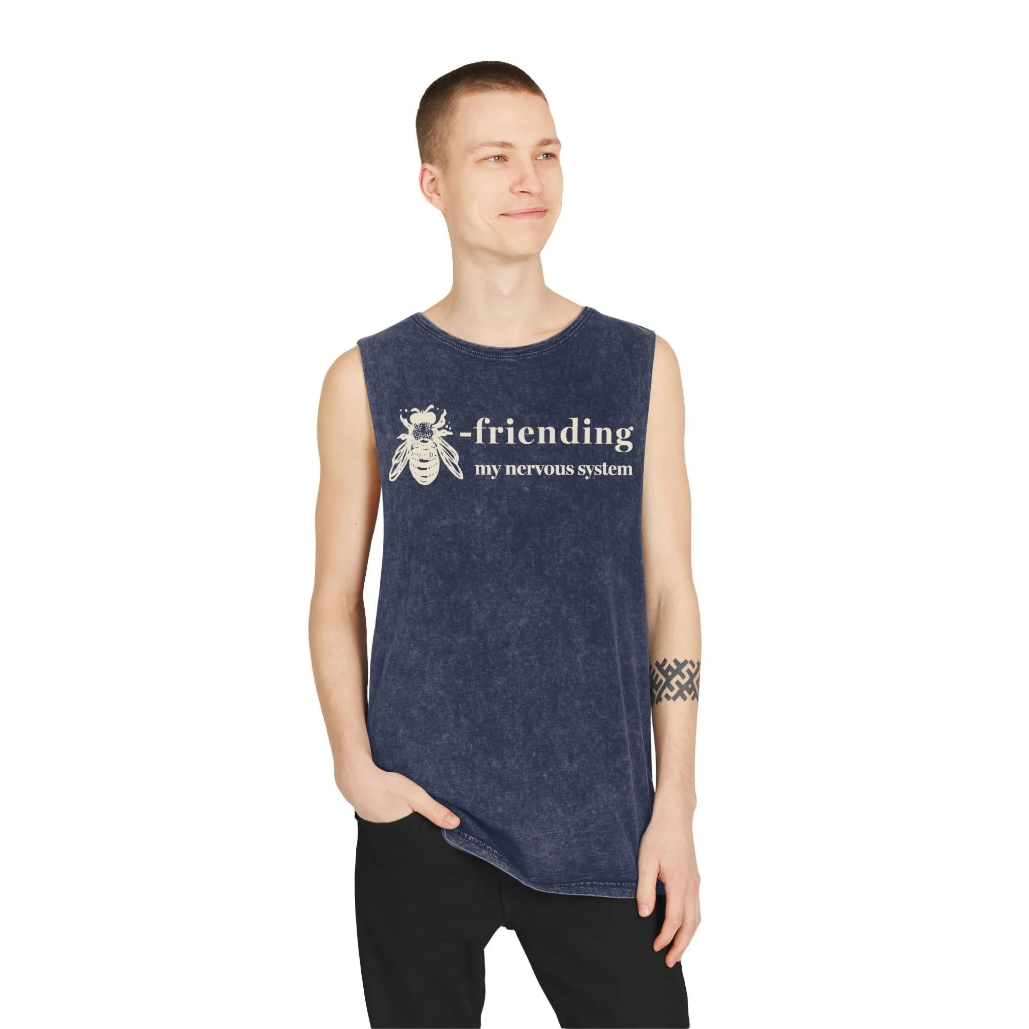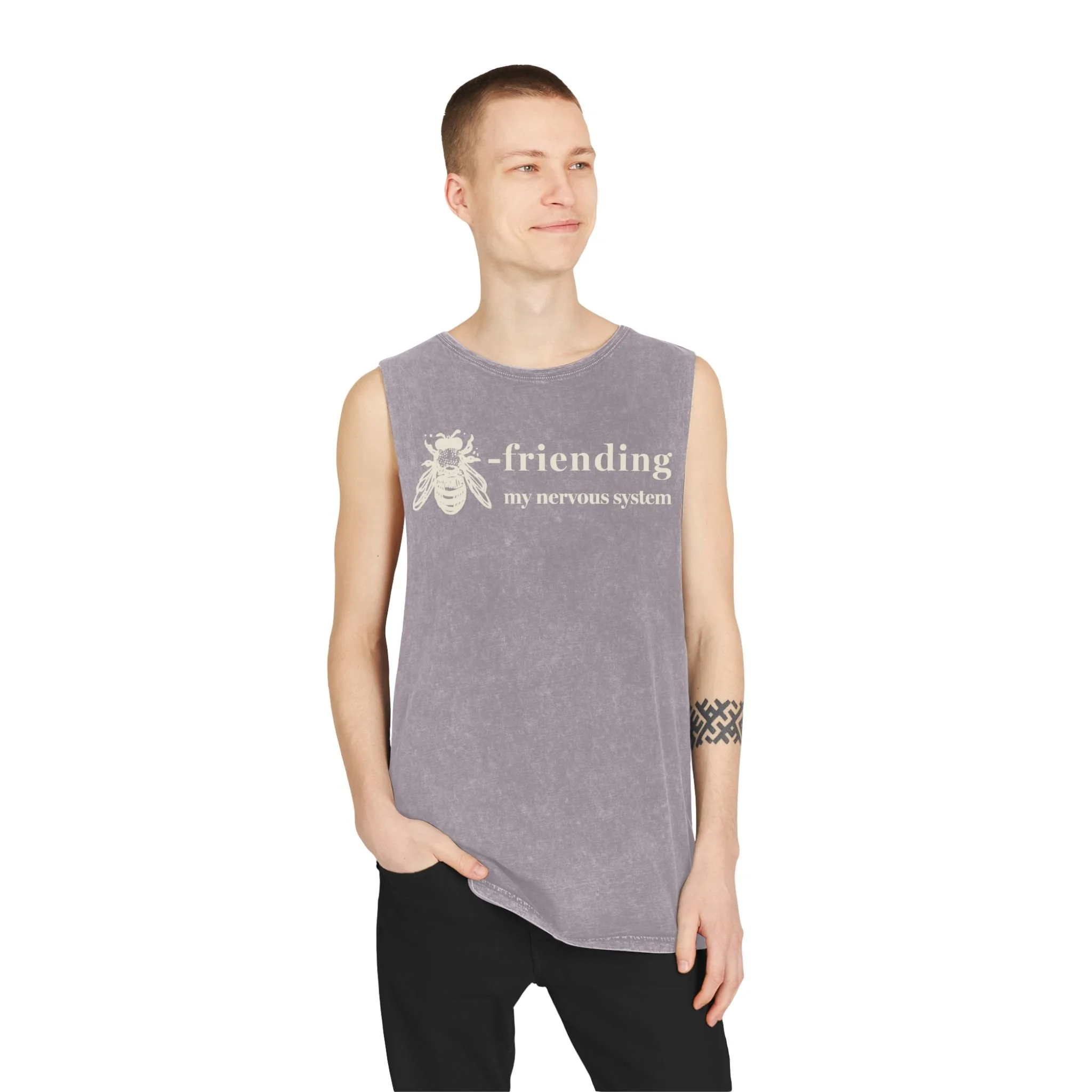 Unisex Stonewash Tank Top - moss green - Bee-friending (cream)